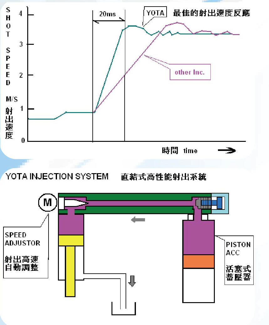 ●射數位化射出行程控制+一體成行射出缸 - DIGITAL INJECTION STROKE CONTROL +ONE PIECE FRAME INJECTION CYLINDER