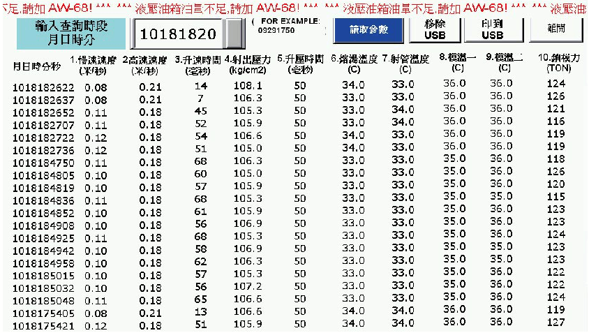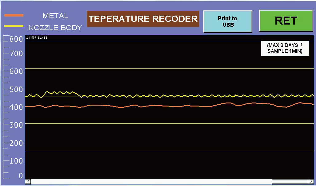 料溫及射料管溫度曲線紀錄功能,可錄八天